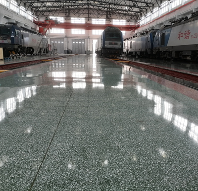 格爾木機務段新建年檢修庫在做高強升級水磨石定制前,貴段領導在進行多方面比較后,對原有設計方案進行變更為機輛高強升級水磨石地坪。貴段